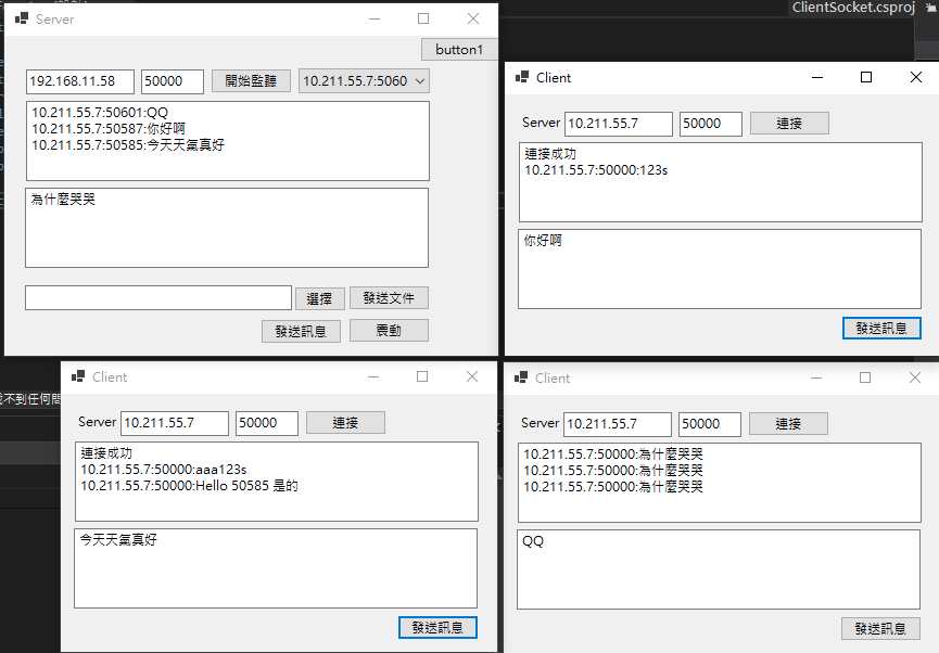 - 把客戶端的IP+Port存到下拉框,透過下拉框自己決定要發送給哪一個客戶端