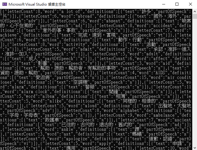再稍微修改一下:把 Rootobject 改成 Vocabulary