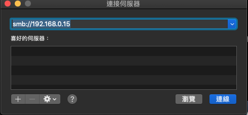 前往 > 連接伺服器 > smb://ip (或是你的電腦名稱) > 連接 > 選擇要裝載的卷宗 > 輸入帳號密碼